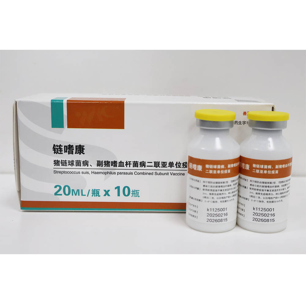 【作用與用途】用于預防由豬鏈球菌2型、7型感染引起的豬鏈球菌病和副豬嗜血桿菌4型、5型感染引起 的副豬嗜血桿菌病。免疫期為5個月。