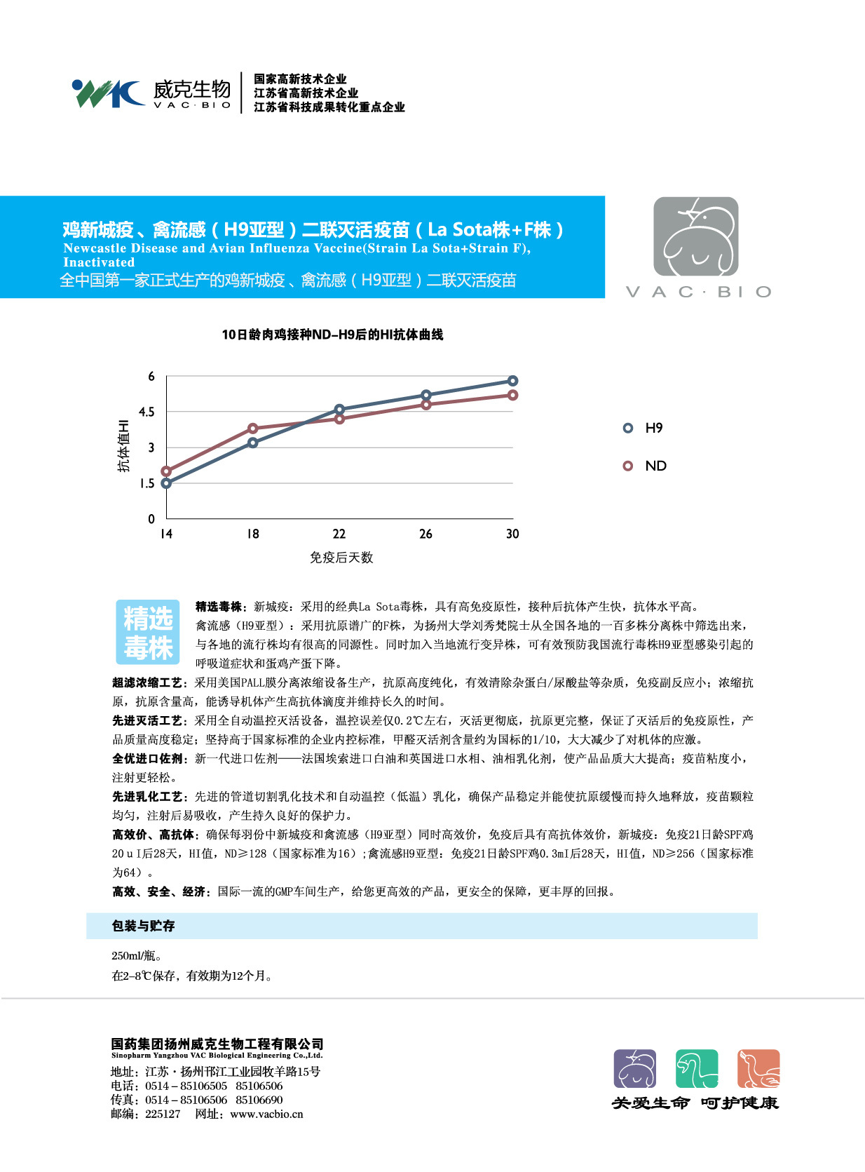 通用名 雞新城疫、禽流感(H9亞型)二聯滅活疫苗(La Sota株+F株)